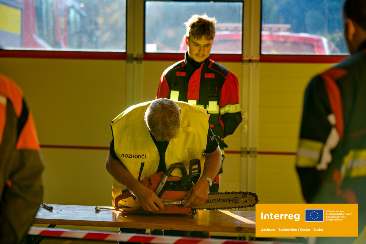 m Rahmen des INTERREG-Förderprojekts „Klimawandel kennt keine Grenzen“ fand am 8. November 2025 eine gemeinsame Ausbildungsmaßnahme bei der Feuerwehr Krásná Studánka in Liberec (Tschechien) statt. Ziel der Veranstaltung war es, Feuerwehrangehörigen aus Sachsen und Tschechien theoretische und praktische Kenntnisse im sicheren Umgang mit der Motorsäge zu vermitteln.